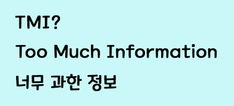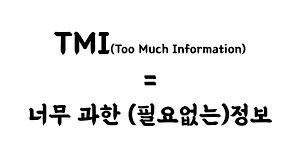 TMI는 'Too Much Information'의 줄임말로, 한국어로는 '투머치 인포메이션'이라고 합니다. TMI는 듣는 사람이 원하지 않